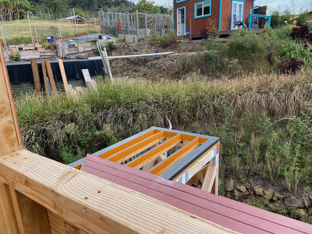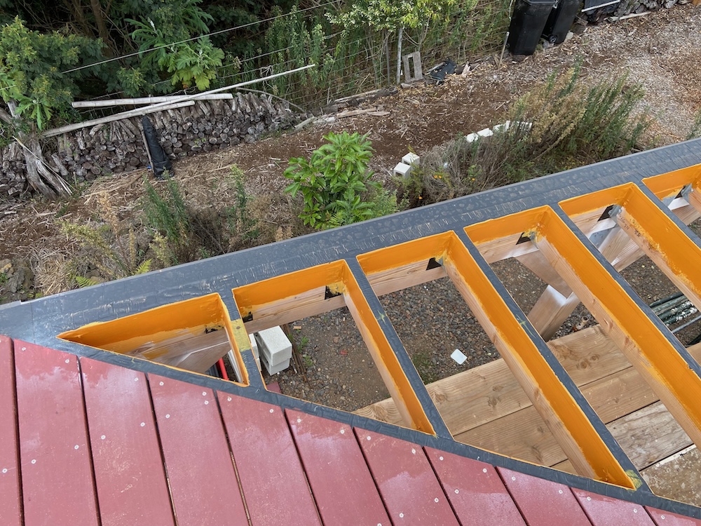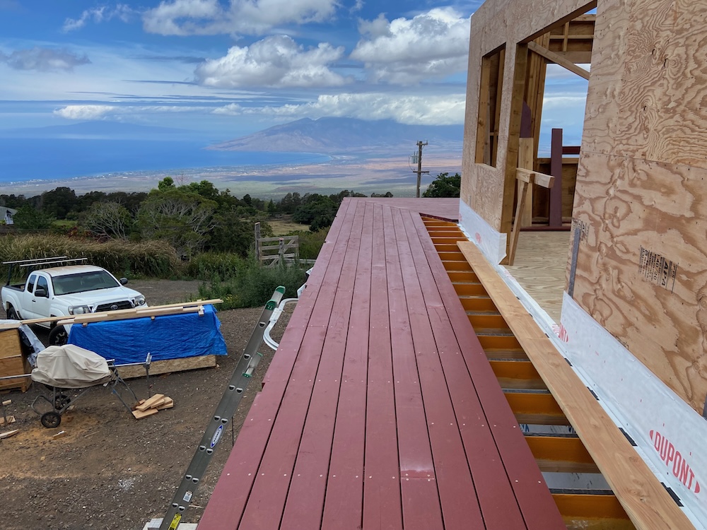 The deck of the Lanai has started to go down this week. With meticulous spacing and stainless steel screws.