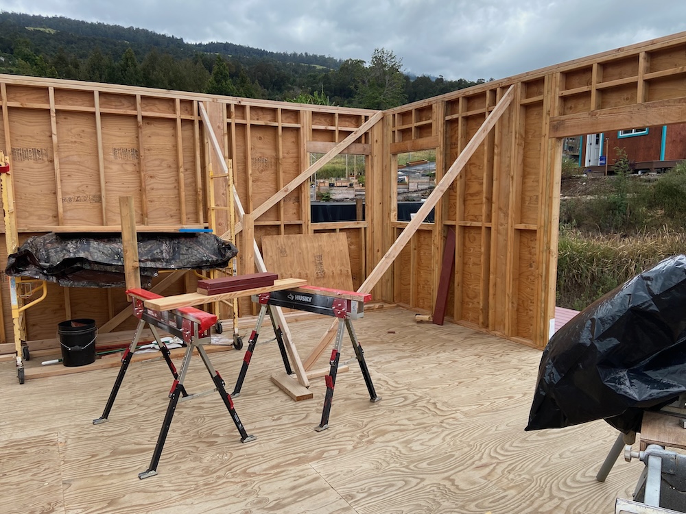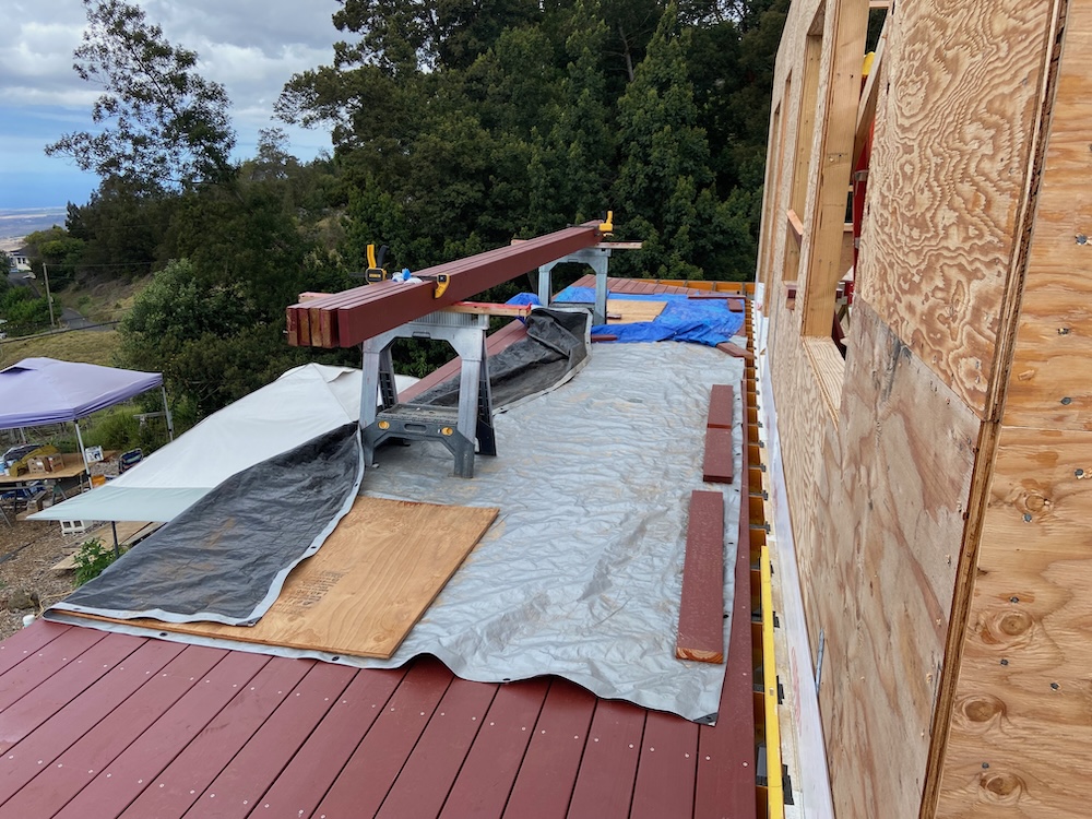 This is the front of the Lanai with the next set of boards staged to get applied.