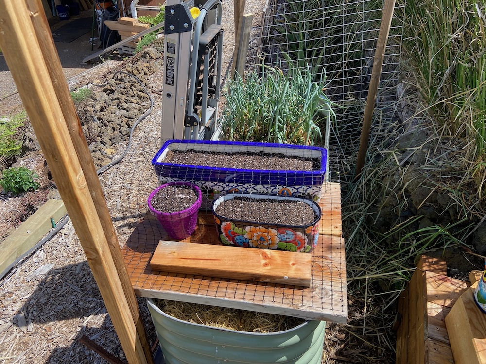 The little tree in the top center is an avocado volunteer. It’s already taller than I am. I’ll likely be able to pick fruit from it from the lanai once it gets taller.