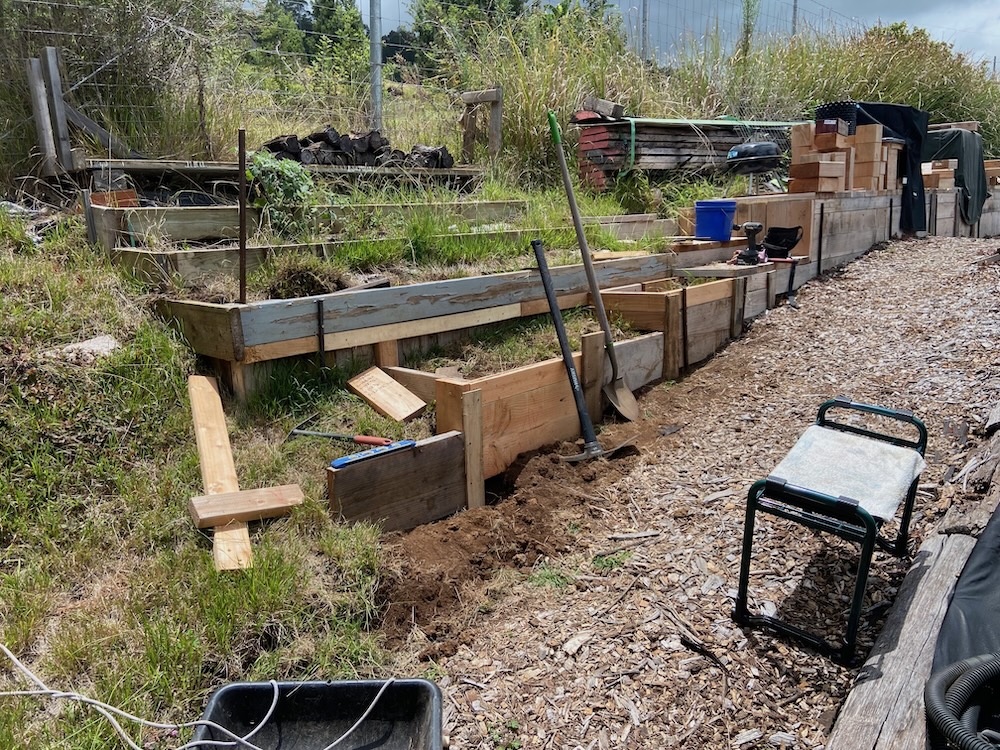 This section of the farm is behind the barn and has it’s own challenges. It seems to want to evolve into multi layer platforms. Still a work in progress.